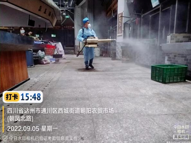 朝阳农贸市场作为达州城区主要农贸市场,为保民生,即使疫情再严重,都要保障市民生活。为保障安全,不仅要引导进入人员测温、扫码,查看出入证和核酸,每天还要多次对现场进行全面消杀。