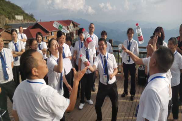 紧张刺激的小组团队游戏环节。“团队协作、传递纸张”游戏,山间的清风徐来,纸张随风飘动,一张白纸在他们的手中传递,不仅传递出了热情的氛围,更传递出了团队的协作精神。 “团队合作、你抛我接”游戏,装着水的水瓶在小组成员手中同步移动。一个个水瓶被抛向空中,一个个的水瓶又被接住,如此循环。每个小组在失败中不断总结经验,顶着压力,专注投入到游戏中,最后都在规定的时间内都完成了比赛竞争。